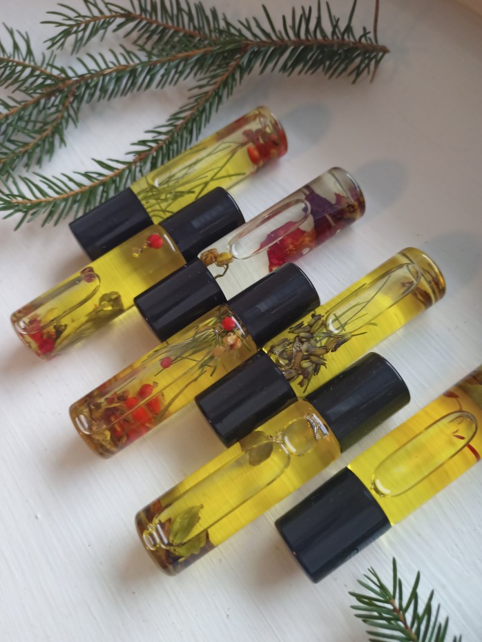 Lavender (Lavandula officinalis): sedative, mental health support, anti-anxiety, antibacterial, antifungal, vulnerary, calms headaches, used for pain management, immunostimulant, support for menstrual issues